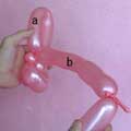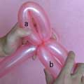 輪ひねり(a)を作ったあと、残ったバルーンを輪ひねり(a)に絡めて閉じてください。