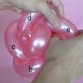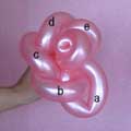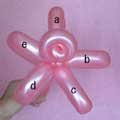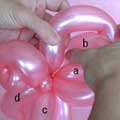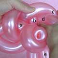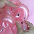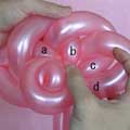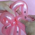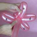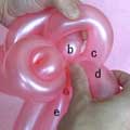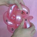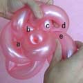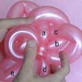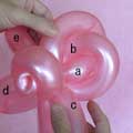 バブル(a)と同じ輪ひねりをあと3つ(c、d、e)作ってください。