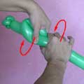 ほぐした状態で風船の尻尾が7cm残るぐらいです。
