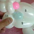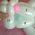 同じ要領で反対の目玉も7、8の間にはさんでほっぺた(12)の下にもぐり込ませます。