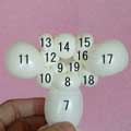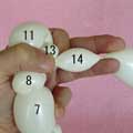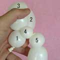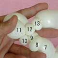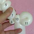 1.5cmのしぼりひねり(15)、1.5cmのバブル(16)、柔らか6cmの輪ひねり(17)を