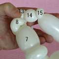 もう一つ1.5cmのバブル(13)を作って、こちらはしぼりひねりにしてください。